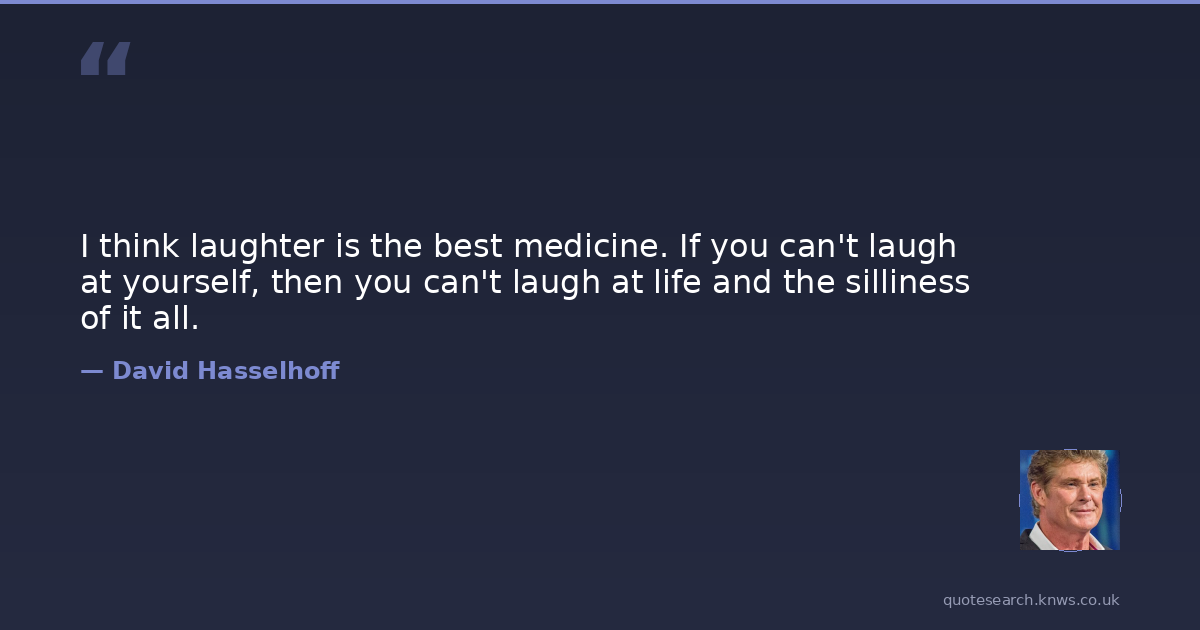 I think laughter is the best medicine. If you can't laugh at yourself, then you can't laugh at life and the silliness of it all.