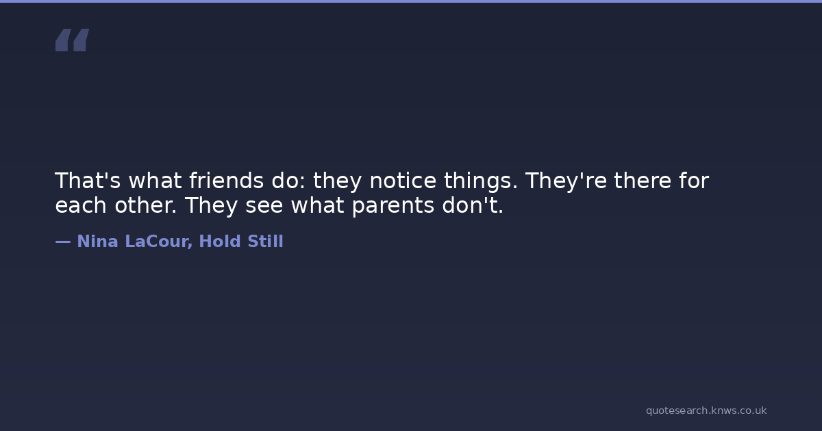 That's what friends do: they notice things. They're there for each other. They see what parents don't.