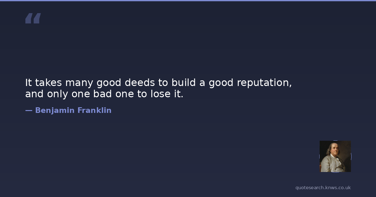 It takes many good deeds to build a good reputation, and only one bad one to lose it.