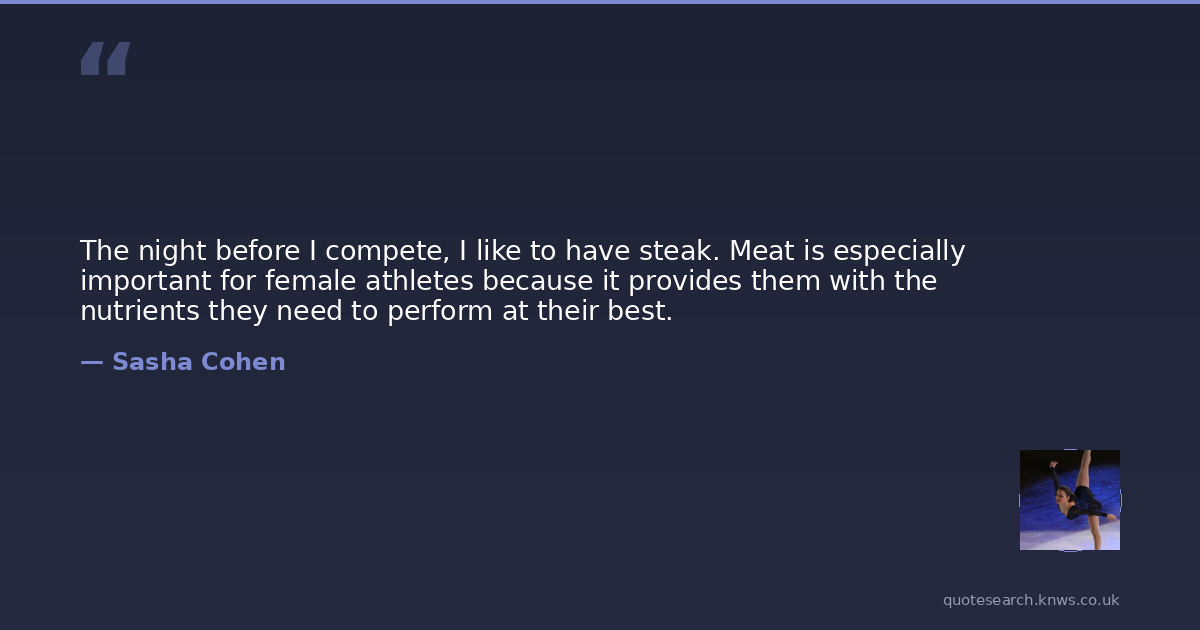 The night before I compete, I like to have steak. Meat is especially important for female athletes because it provides them with the nutrients they need to perform at their best.