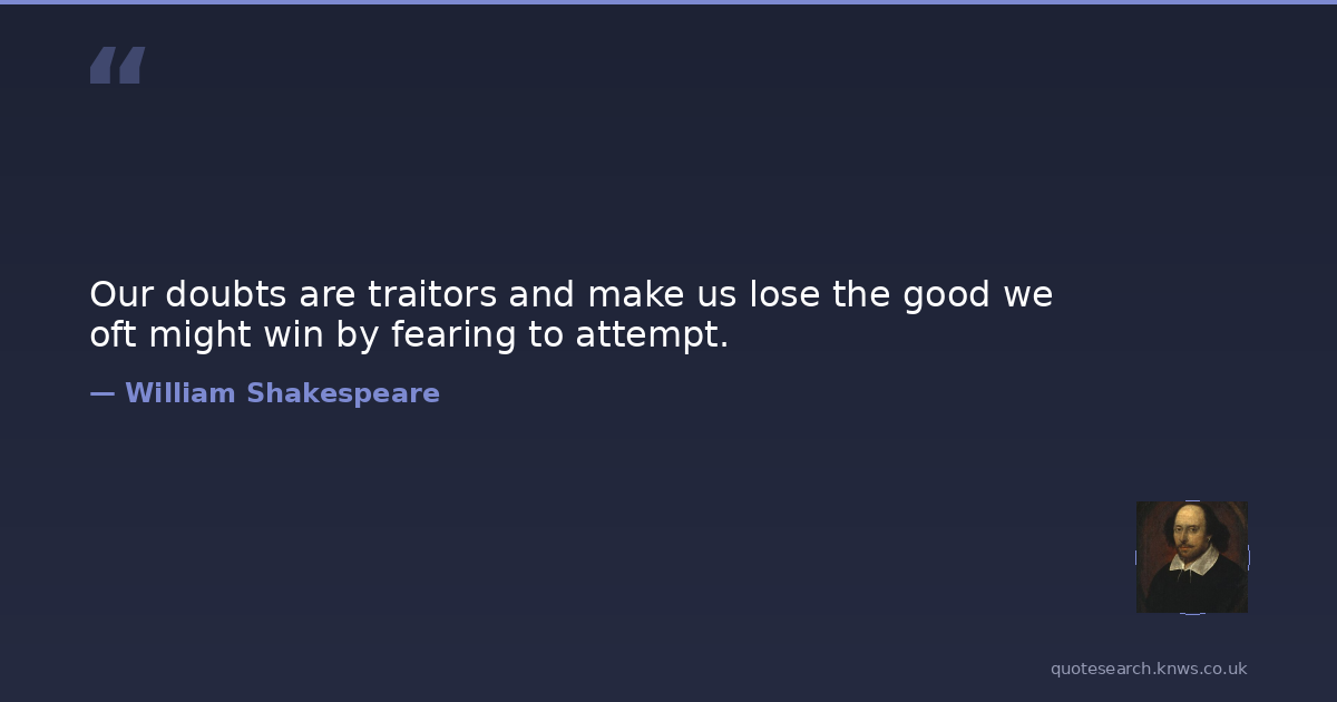 Our doubts are traitors and make us lose the good we oft might win by fearing to attempt.