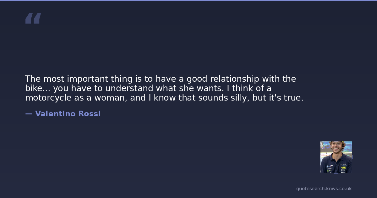 The most important thing is to have a good relationship with the bike... you have to understand what she wants. I think of a motorcycle as a woman, and I know that sounds silly, but it's true.