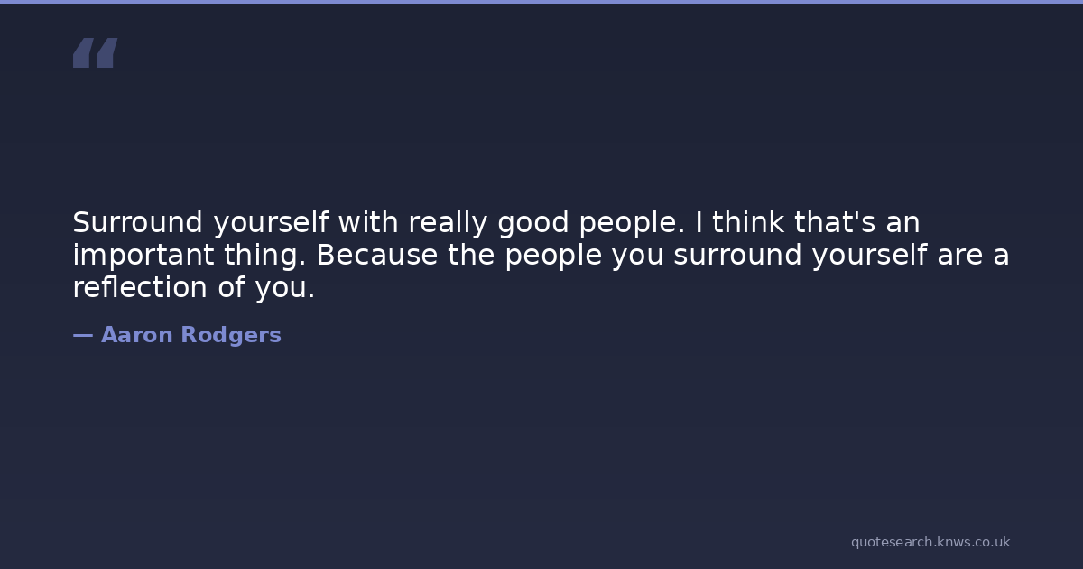 Surround yourself with really good people. I think that's an important thing. Because the people you surround yourself are a reflection of you.