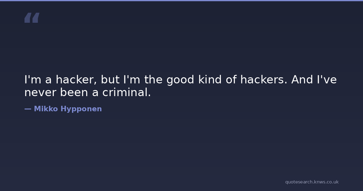 I'm a hacker, but I'm the good kind of hackers. And I've never been a criminal.