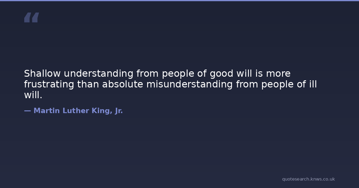 Shallow understanding from people of good will is more frustrating than absolute misunderstanding from people of ill will. People Understanding Download Image Share on X Share on Facebook Copy Link