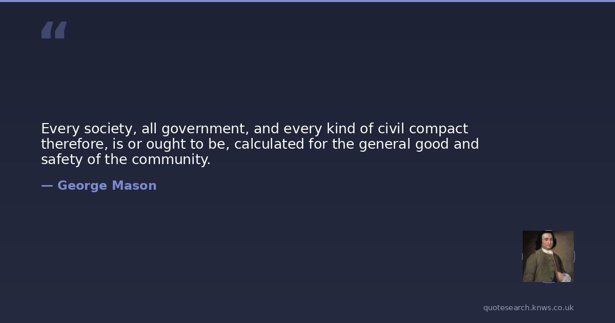 Every society, all government, and every kind of civil compact therefore, is or ought to be, calculated for the general good and safety of the community.