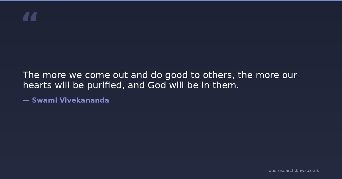 The more we come out and do good to others, the more our hearts will be purified, and God will be in them.