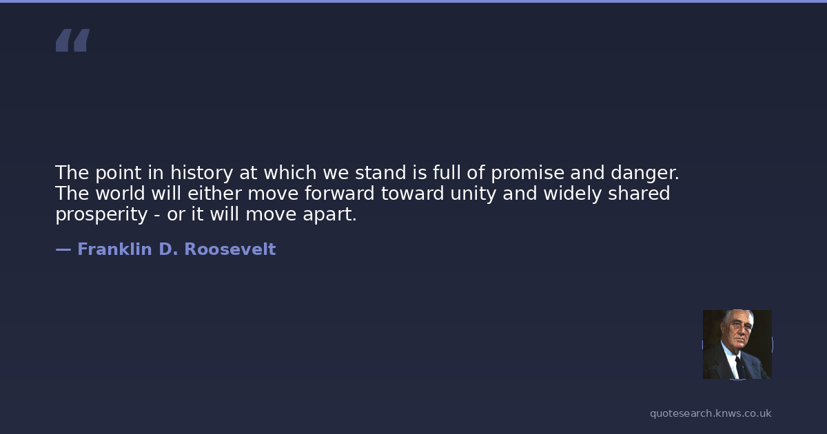 The point in history at which we stand is full of promise and danger. The world will either move forward toward unity and widely shared prosperity - or it will move apart.