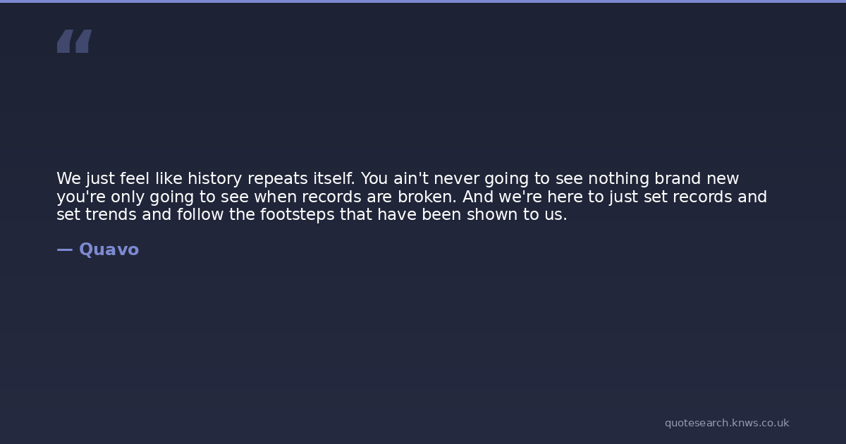 We just feel like history repeats itself. You ain't never going to see nothing brand new you're only going to see when records are broken. And we're here to just set records and set trends and follow the footsteps that have been shown to us.
