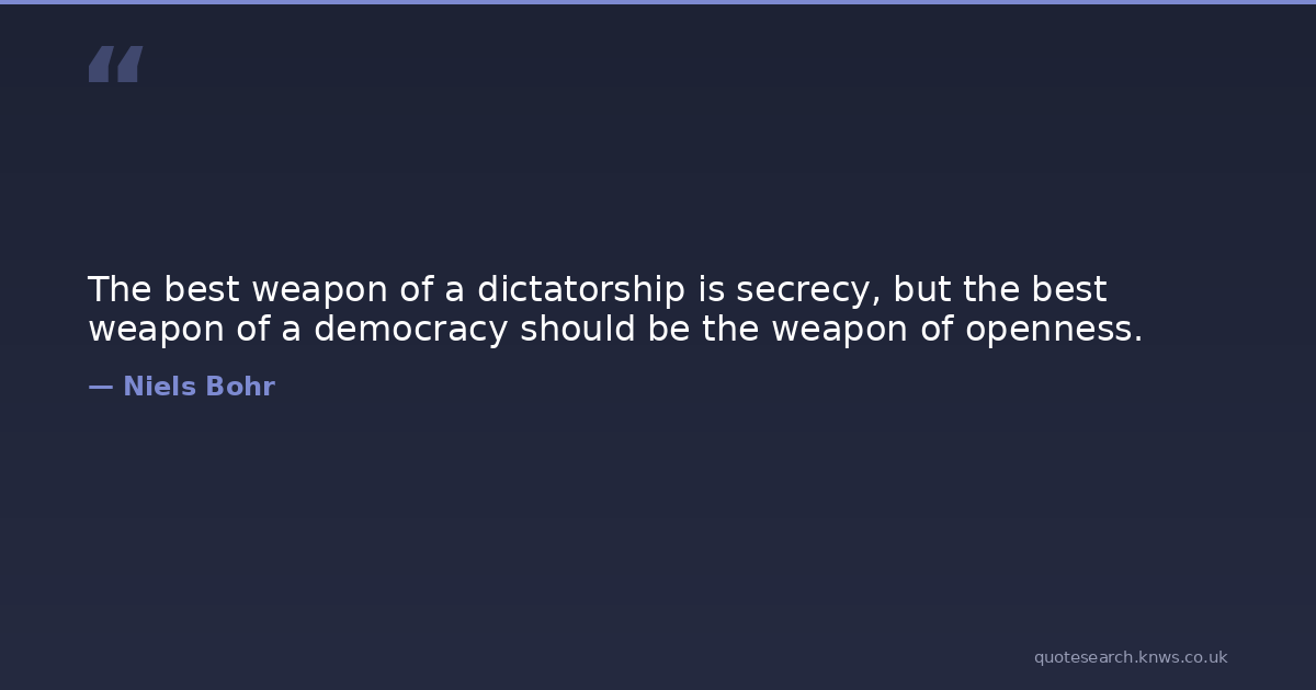 The best weapon of a dictatorship is secrecy, but the best weapon of a democracy should be the weapon of openness.