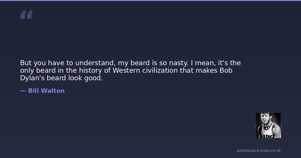 But you have to understand, my beard is so nasty. I mean, it's the only beard in the history of Western civilization that makes Bob Dylan's beard look good.
