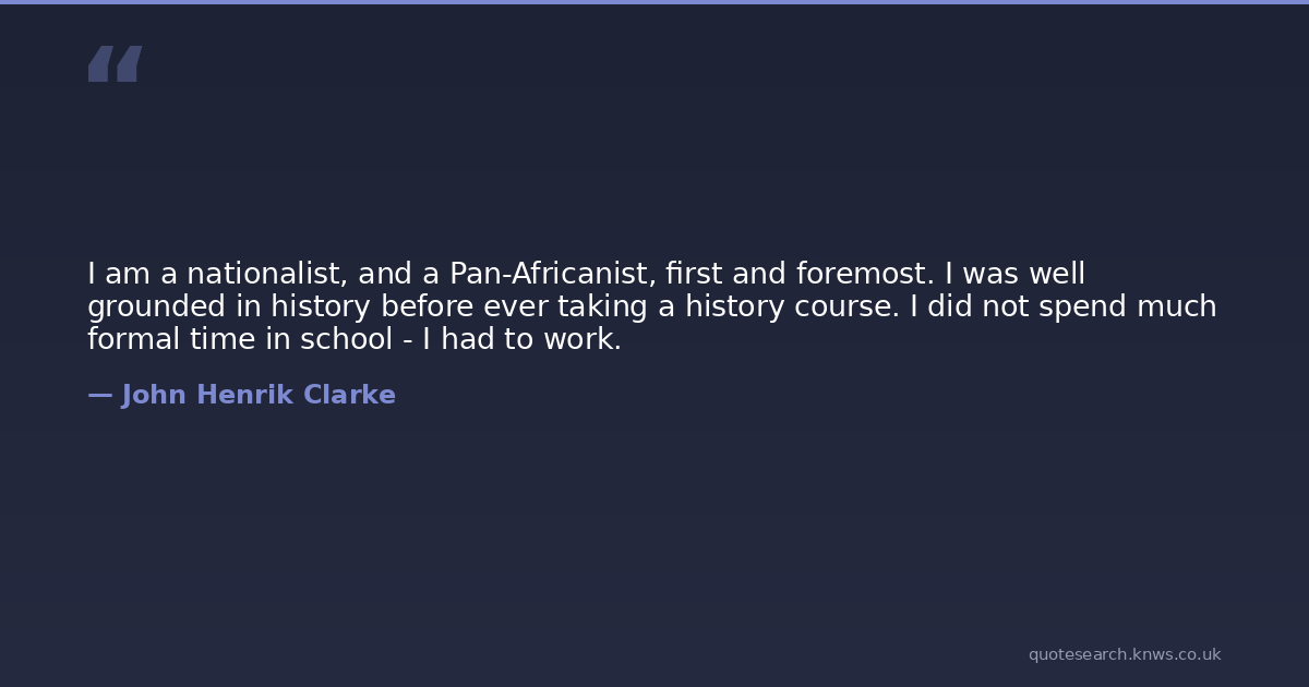 I am a nationalist, and a Pan-Africanist, first and foremost. I was well grounded in history before ever taking a history course. I did not spend much formal time in school - I had to work.