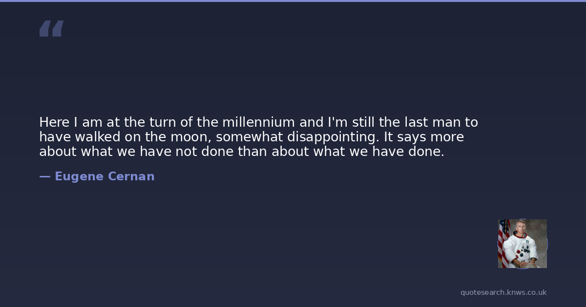Here I am at the turn of the millennium and I'm still the last man to have walked on the moon, somewhat disappointing. It says more about what we have not done than about what we have done.