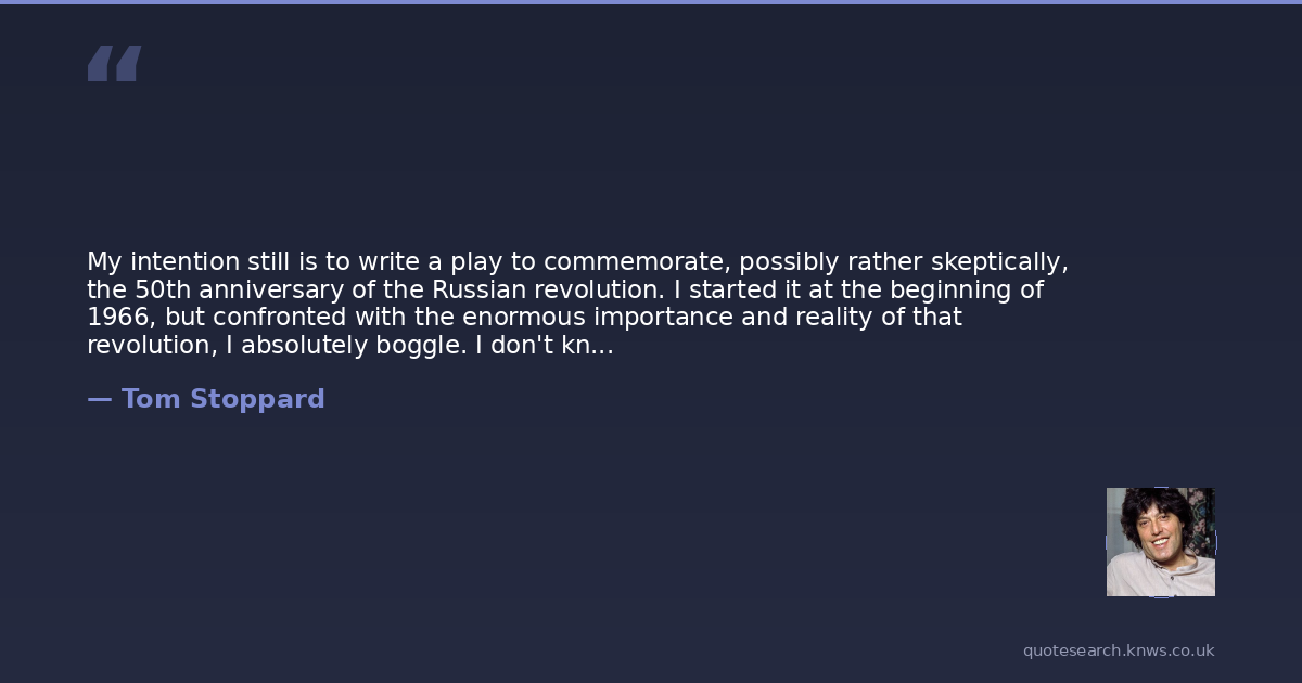 My intention still is to write a play to commemorate, possibly rather skeptically, the 50th anniversary of the Russian revolution. I started it at the beginning of 1966, but confronted with the enormous importance and reality of that revolution, I absolutely boggle. I don't know what to do about it.