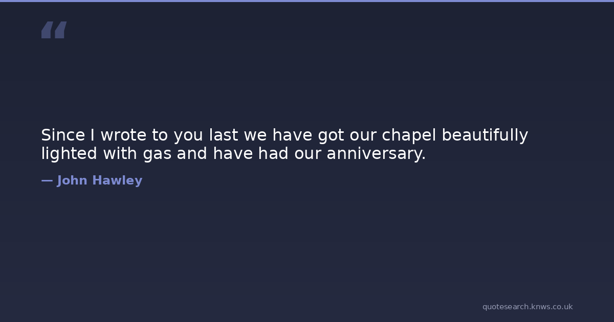 Since I wrote to you last we have got our chapel beautifully lighted with gas and have had our anniversary. You Last Gas Download Image Share on X Share on Facebook Copy Link