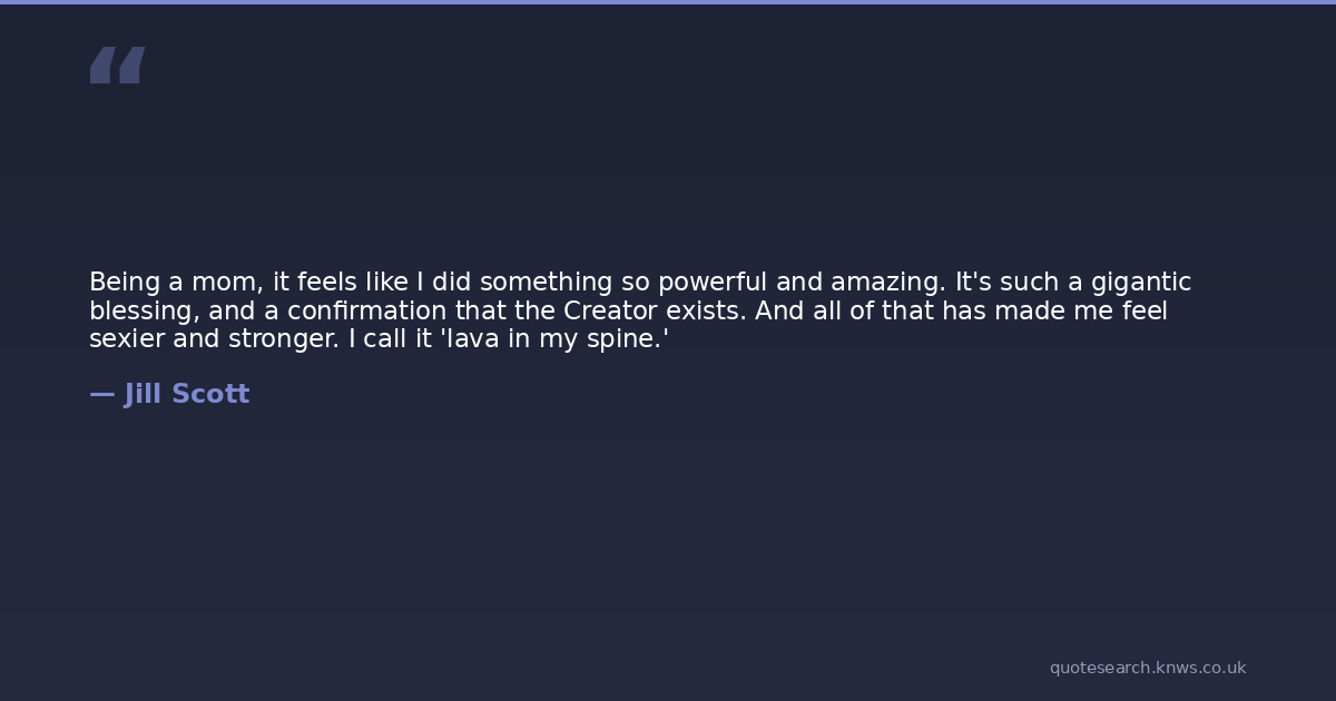 Being a mom, it feels like I did something so powerful and amazing. It's such a gigantic blessing, and a confirmation that the Creator exists. And all of that has made me feel sexier and stronger. I call it 'lava in my spine.'