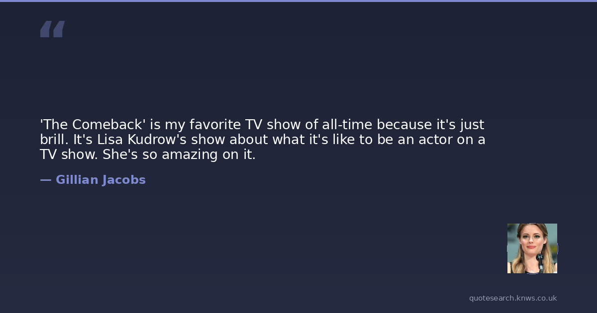 'The Comeback' is my favorite TV show of all-time because it's just brill. It's Lisa Kudrow's show about what it's like to be an actor on a TV show. She's so amazing on it.