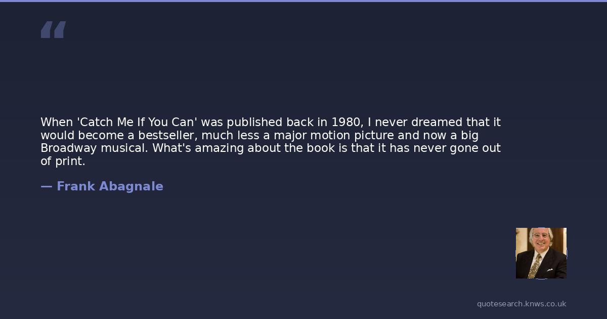 When 'Catch Me If You Can' was published back in 1980, I never dreamed that it would become a bestseller, much less a major motion picture and now a big Broadway musical. What's amazing about the book is that it has never gone out of print.