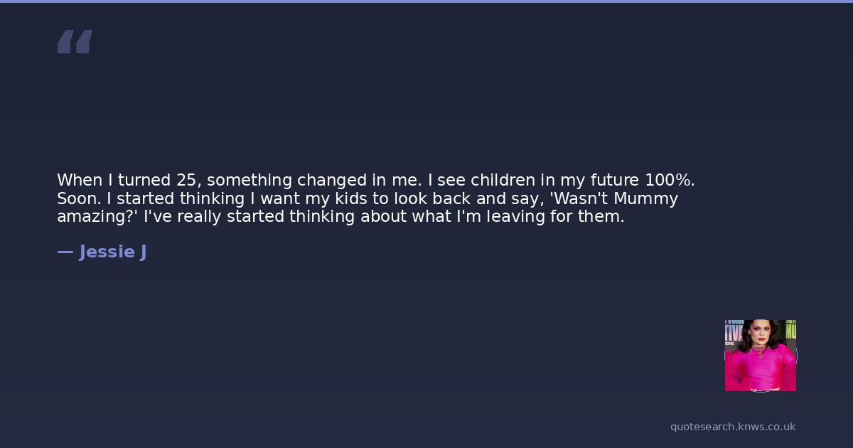 When I turned 25, something changed in me. I see children in my future 100%. Soon. I started thinking I want my kids to look back and say, 'Wasn't Mummy amazing?' I've really started thinking about what I'm leaving for them.
