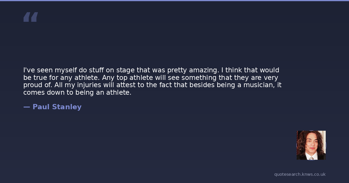 I've seen myself do stuff on stage that was pretty amazing. I think that would be true for any athlete. Any top athlete will see something that they are very proud of. All my injuries will attest to the fact that besides being a musician, it comes down to being an athlete.