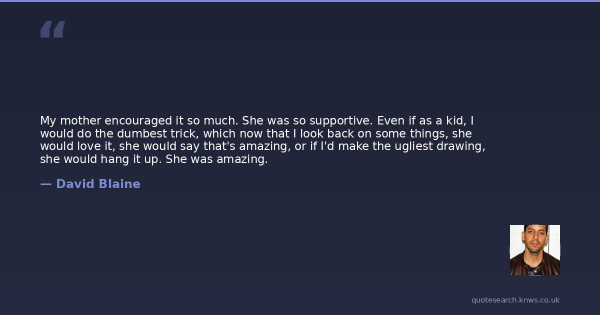 My mother encouraged it so much. She was so supportive. Even if as a kid, I would do the dumbest trick, which now that I look back on some things, she would love it, she would say that's amazing, or if I'd make the ugliest drawing, she would hang it up. She was amazing.