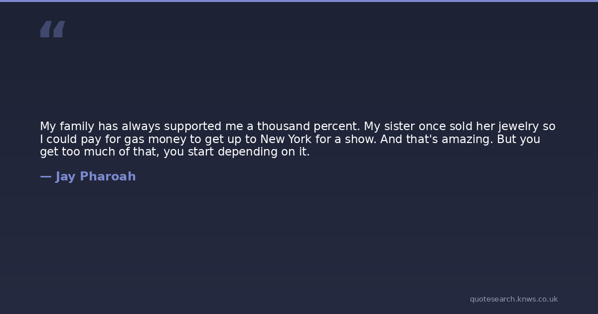 My family has always supported me a thousand percent. My sister once sold her jewelry so I could pay for gas money to get up to New York for a show. And that's amazing. But you get too much of that, you start depending on it.