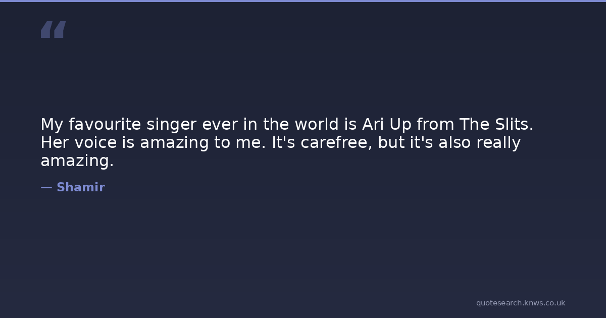 My favourite singer ever in the world is Ari Up from The Slits. Her voice is amazing to me. It's carefree, but it's also really amazing.