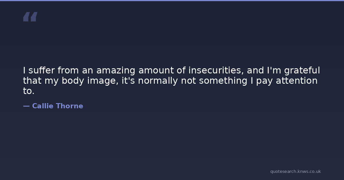 I suffer from an amazing amount of insecurities, and I'm grateful that my body image, it's normally not something I pay attention to.
