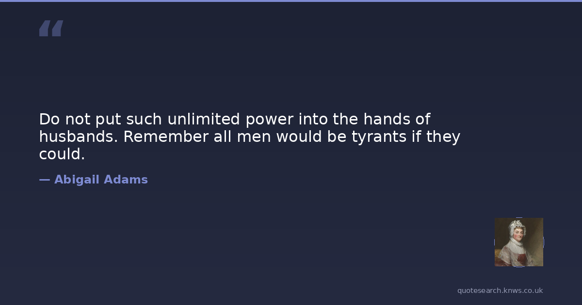 Do not put such unlimited power into the hands of husbands. Remember all men would be tyrants if they could.
