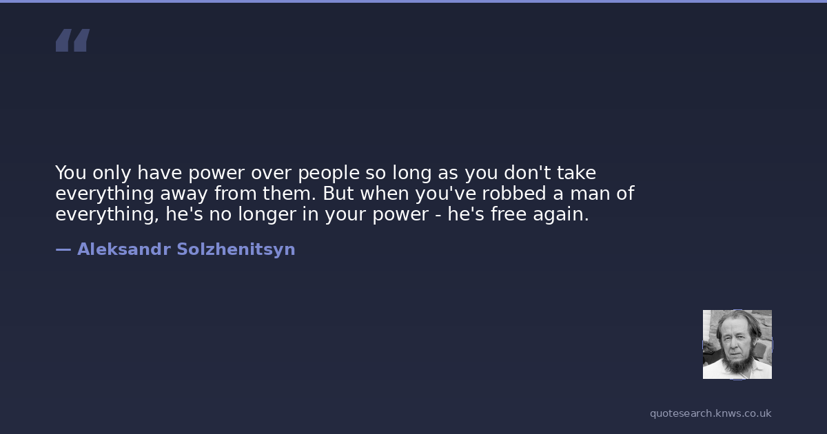 You only have power over people so long as you don't take everything away from them. But when you've robbed a man of everything, he's no longer in your power - he's free again.