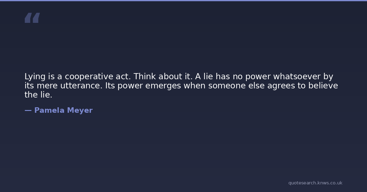 Lying is a cooperative act. Think about it. A lie has no power whatsoever by its mere utterance. Its power emerges when someone else agrees to believe the lie.
