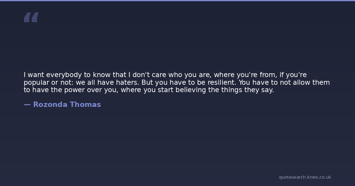 I want everybody to know that I don't care who you are, where you're from, if you're popular or not: we all have haters. But you have to be resilient. You have to not allow them to have the power over you, where you start believing the things they say.