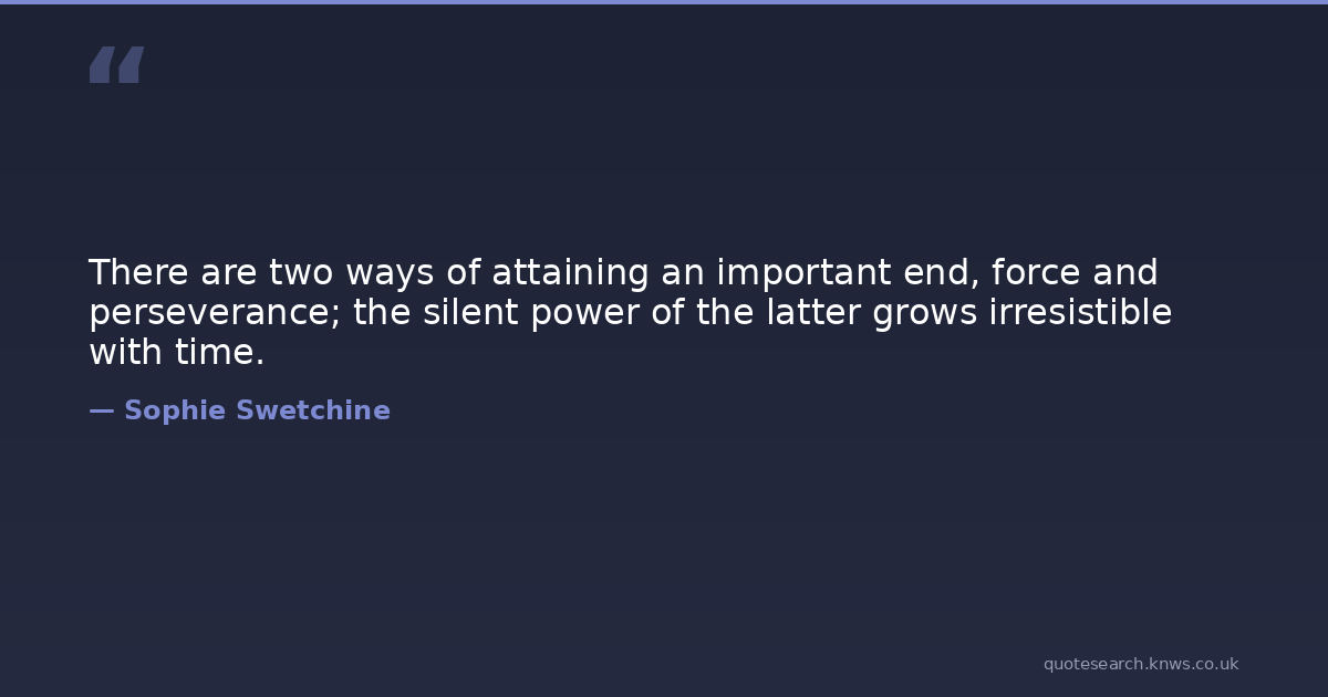 There are two ways of attaining an important end, force and perseverance; the silent power of the latter grows irresistible with time.