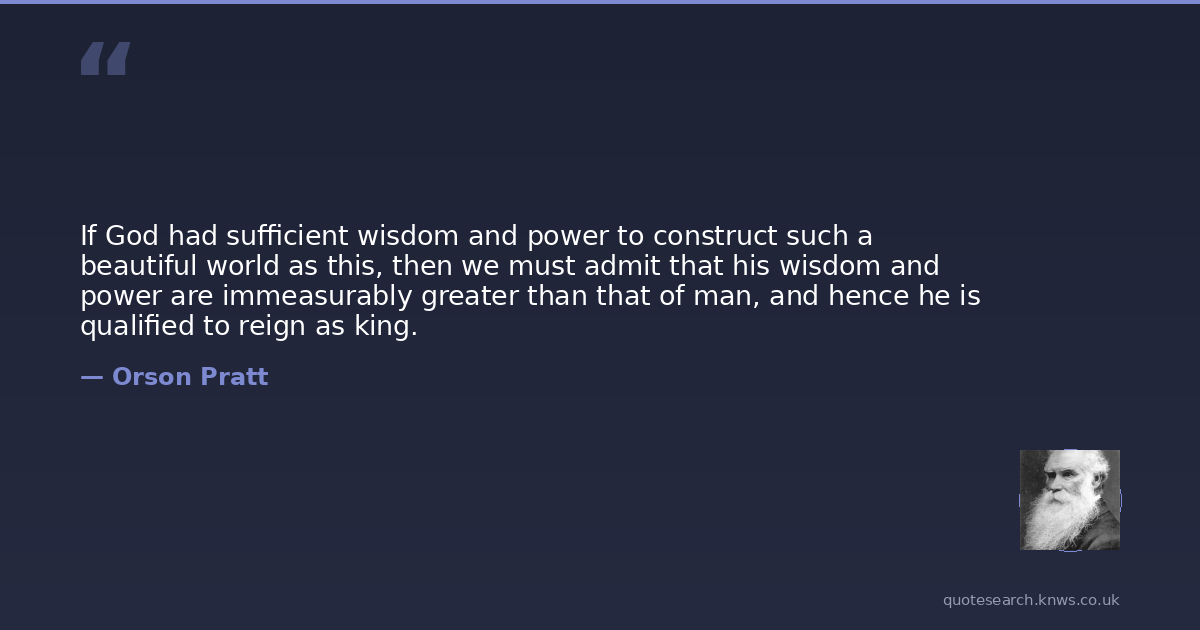If God had sufficient wisdom and power to construct such a beautiful world as this, then we must admit that his wisdom and power are immeasurably greater than that of man, and hence he is qualified to reign as king.