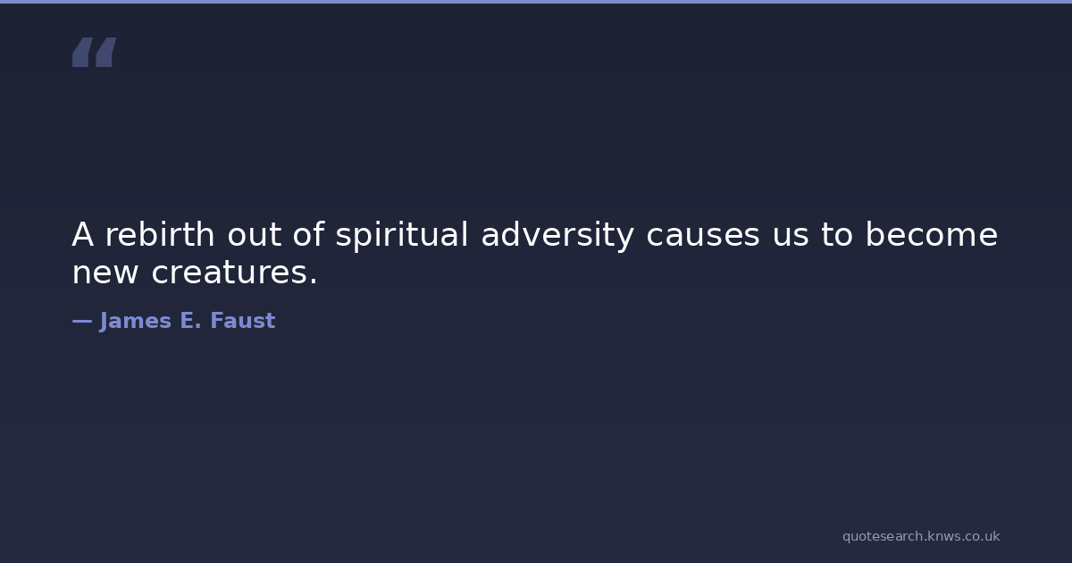 A rebirth out of spiritual adversity causes us to become new creatures.