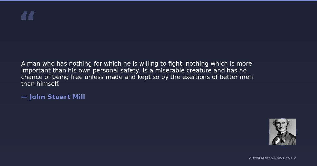 A man who has nothing for which he is willing to fight, nothing which is more important than his own personal safety, is a miserable creature and has no chance of being free unless made and kept so by the exertions of better men than himself.