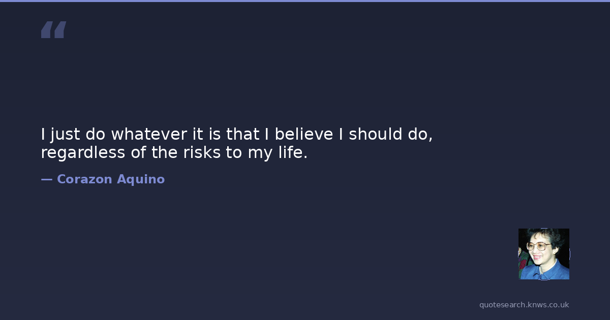 I just do whatever it is that I believe I should do, regardless of the risks to my life.