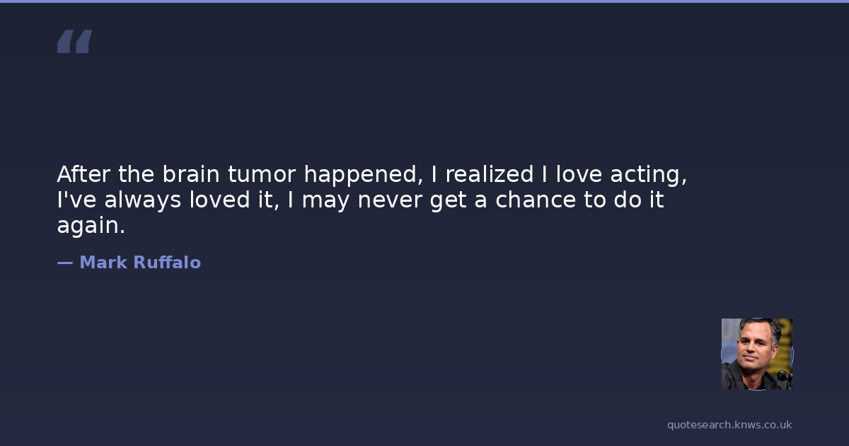 After the brain tumor happened, I realized I love acting, I've always loved it, I may never get a chance to do it again.