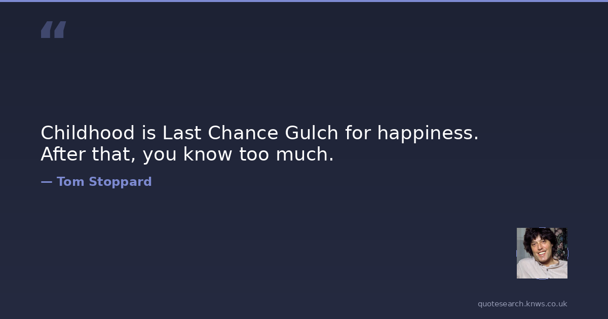 Childhood is Last Chance Gulch for happiness. After that, you know too much.