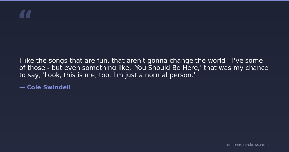 I like the songs that are fun, that aren't gonna change the world - I've some of those - but even something like, 'You Should Be Here,' that was my chance to say, 'Look, this is me, too. I'm just a normal person.'