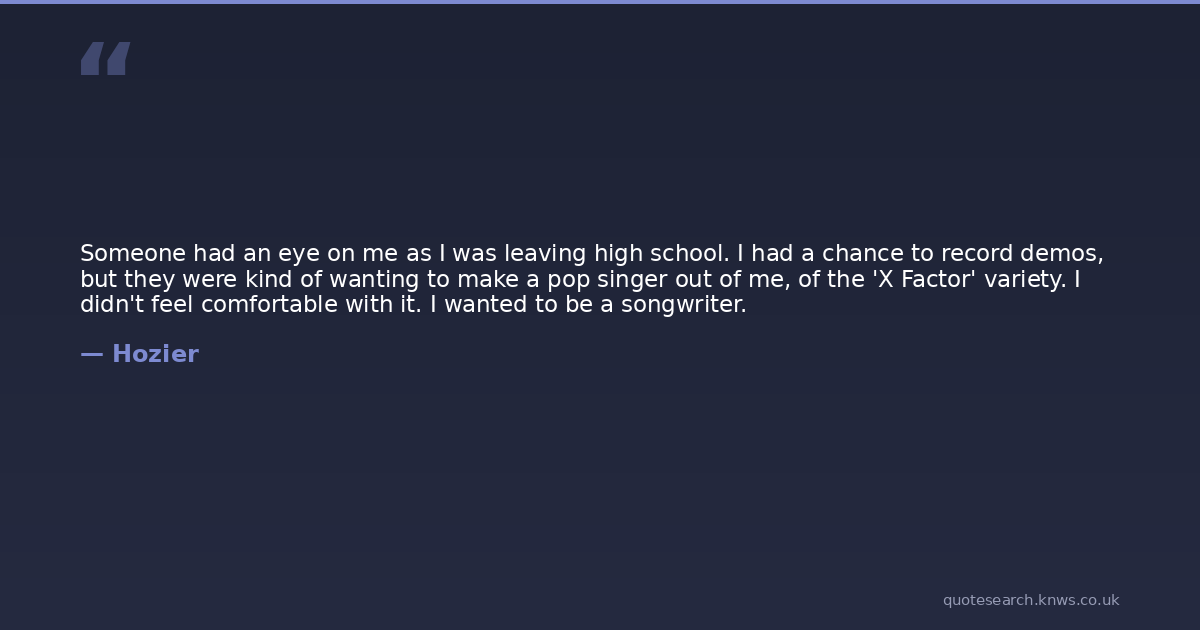 Someone had an eye on me as I was leaving high school. I had a chance to record demos, but they were kind of wanting to make a pop singer out of me, of the 'X Factor' variety. I didn't feel comfortable with it. I wanted to be a songwriter.