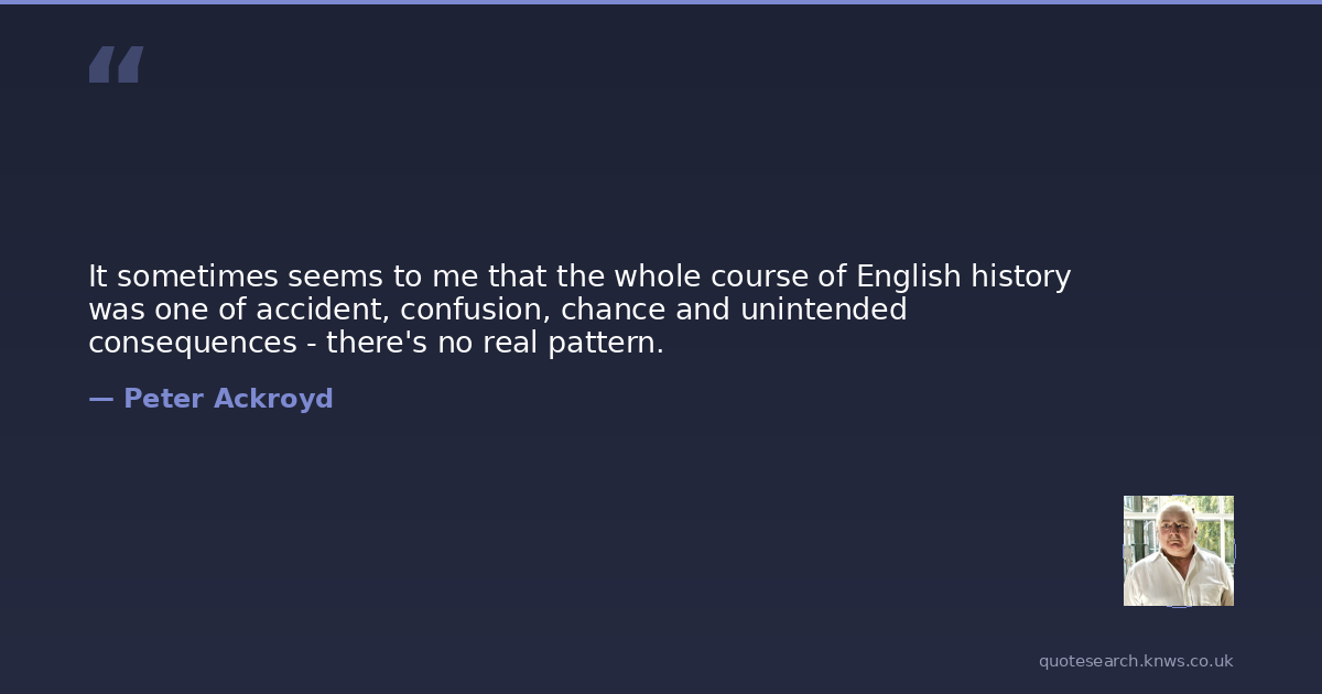 It sometimes seems to me that the whole course of English history was one of accident, confusion, chance and unintended consequences - there's no real pattern.
