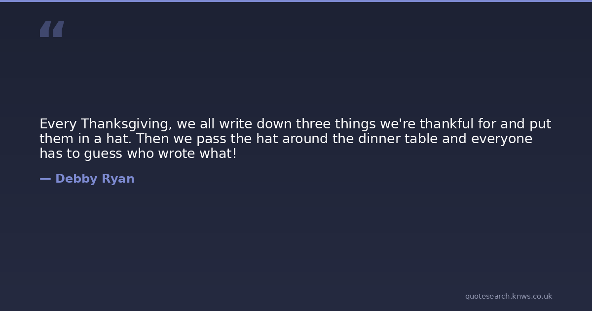 Every Thanksgiving, we all write down three things we're thankful for and put them in a hat. Then we pass the hat around the dinner table and everyone has to guess who wrote what!