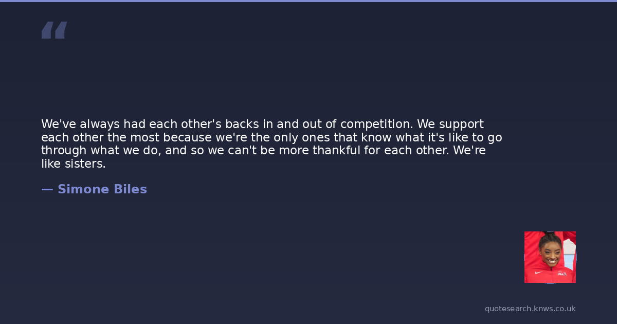We've always had each other's backs in and out of competition. We support each other the most because we're the only ones that know what it's like to go through what we do, and so we can't be more thankful for each other. We're like sisters.