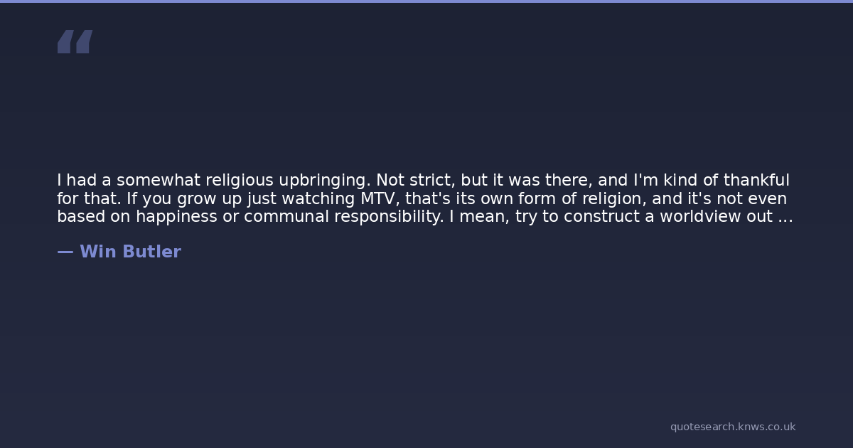 I had a somewhat religious upbringing. Not strict, but it was there, and I'm kind of thankful for that. If you grow up just watching MTV, that's its own form of religion, and it's not even based on happiness or communal responsibility. I mean, try to construct a worldview out of that.
