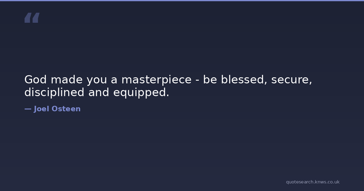 God made you a masterpiece - be blessed, secure, disciplined and equipped.