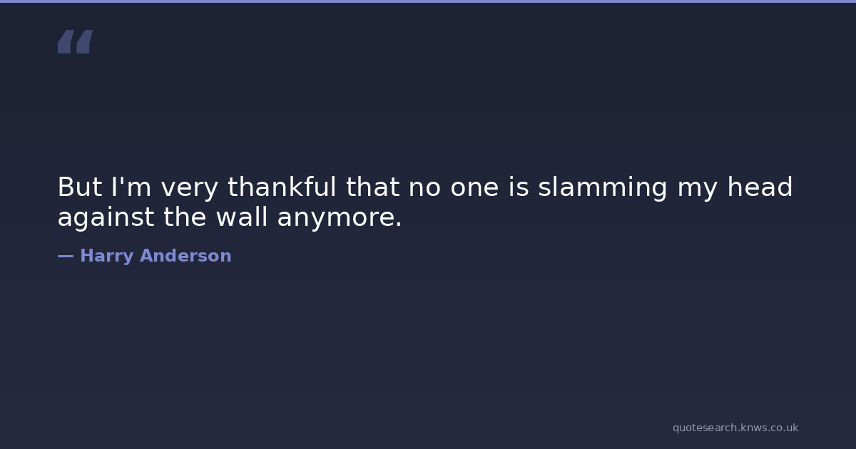 But I'm very thankful that no one is slamming my head against the wall anymore. Head Anymore Wall Download Image Share on X Share on Facebook Copy Link