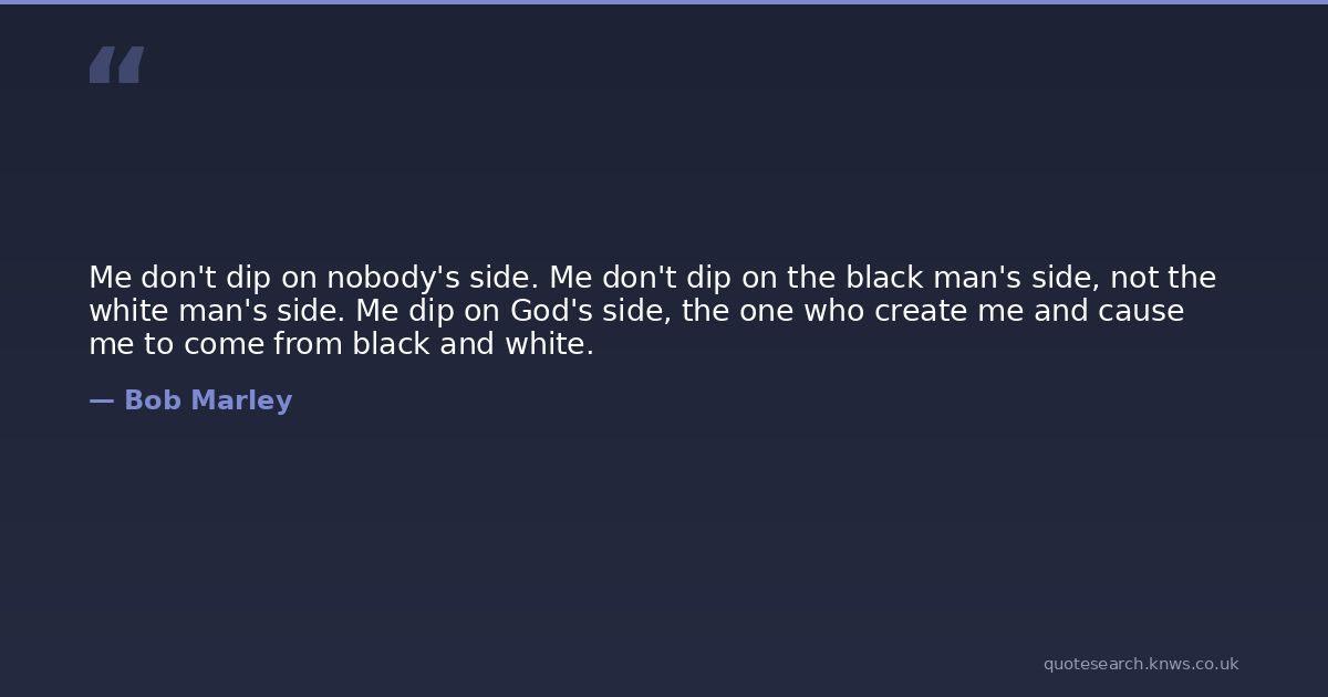 Me don't dip on nobody's side. Me don't dip on the black man's side, not the white man's side. Me dip on God's side, the one who create me and cause me to come from black and white.