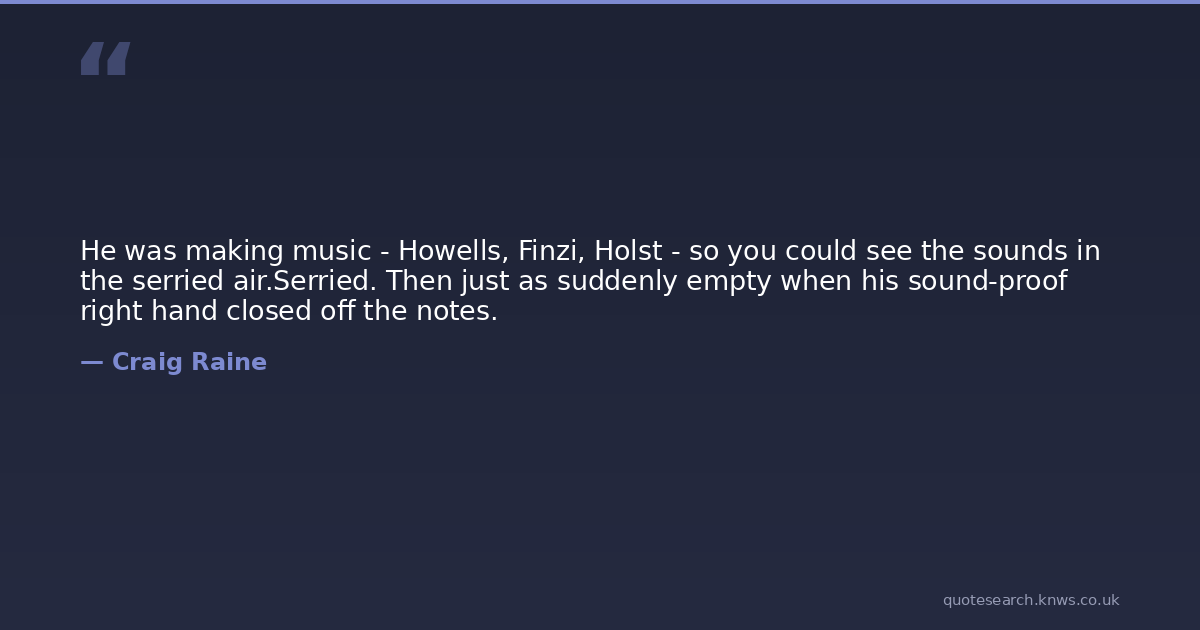 He was making music - Howells, Finzi, Holst - so you could see the sounds in the serried air.Serried. Then just as suddenly empty when his sound-proof right hand closed off the notes.