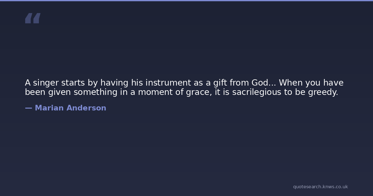 A singer starts by having his instrument as a gift from God... When you have been given something in a moment of grace, it is sacrilegious to be greedy.